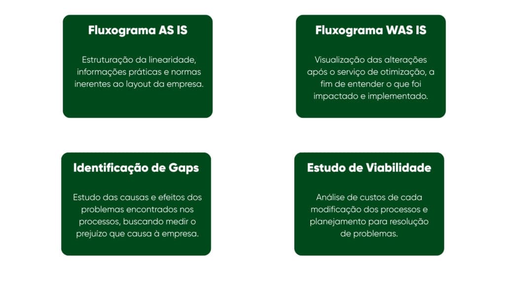 - Oferece um estudo de viabilidade em relação às possíveis mudanças na empresa.